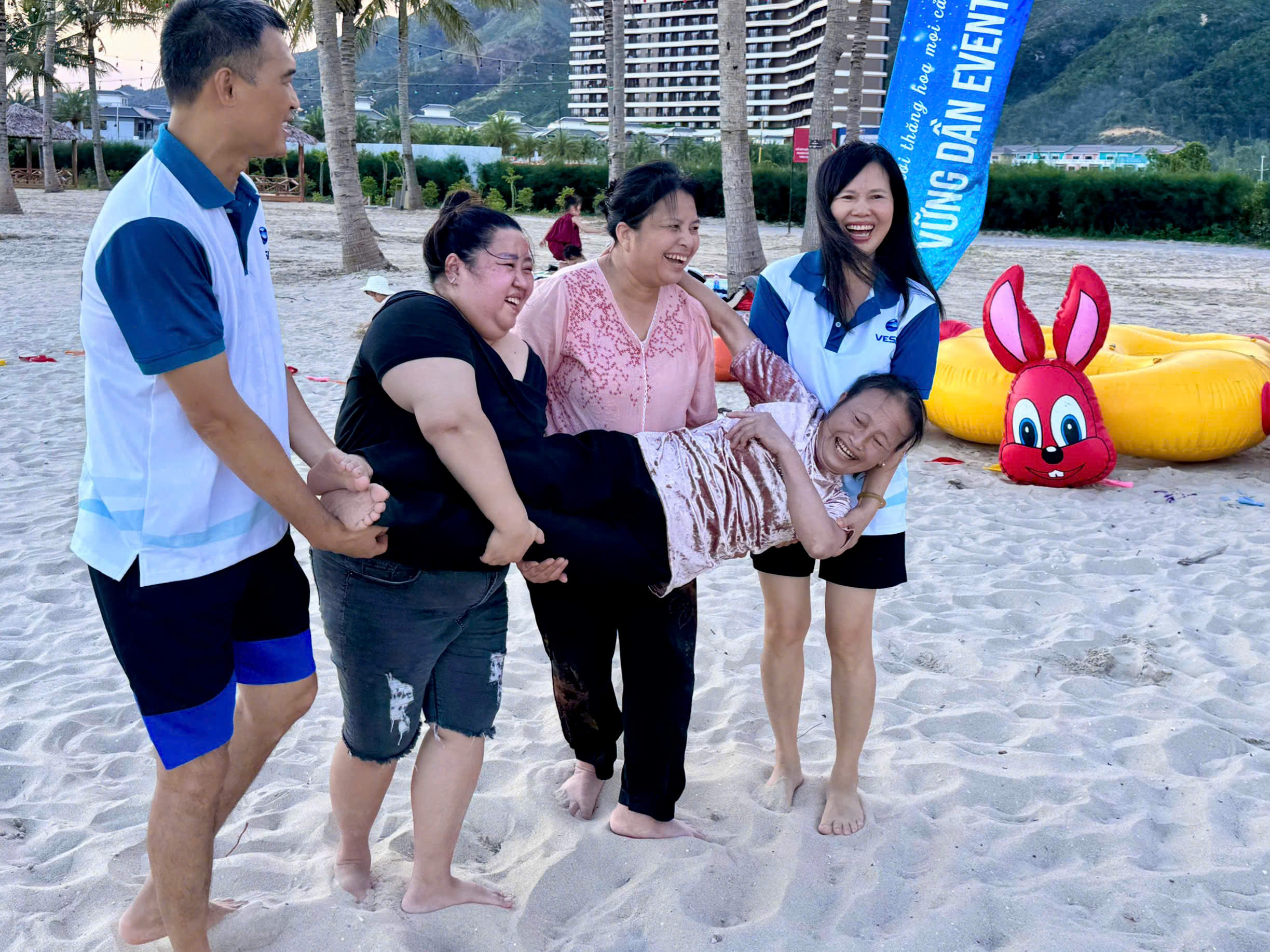 Buổi chiều team building trên bãi biển diễn ra trong không khí thoải mái. Không cần ai phải “lăn xả”, không ai bị thúc ép phải sôi động. Vậy mà vẫn có tiếng cười, vẫn có những pha phối hợp ăn ý giữa những đồng nghiệp có khi trong công việc lại rất ít cơ hội tương tác.